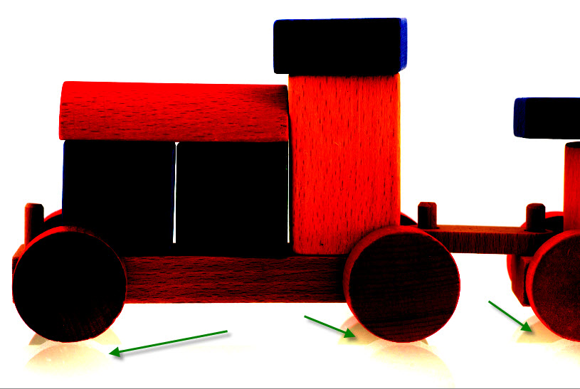 Zum Abschluss möchten wir Ihnen gerne zwei Vergleichsbilder zeigen. Ersteres Bild zeigt eine offenbar gut freigestellte kleine  Spielzeugeisenbahn. Haben Sie einen handelsüblichen „billigen“ Monitor sehen sie dort nur weiß. Je besser der Bildschirm, desto mehr werden Sie erkennen ohne den Kopf zur Seite neigen zu müssen. Verändert man mit der Gradiationskurve (in Photoshop STRG+M) die Farben, dann kann man erkennen, wo noch nachgebessert werden muss.
